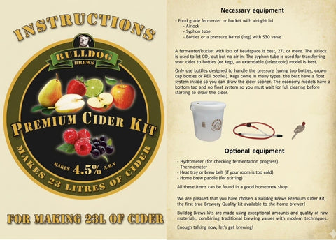 - 1 x 11g sachet of dried cider yeast and sweetener