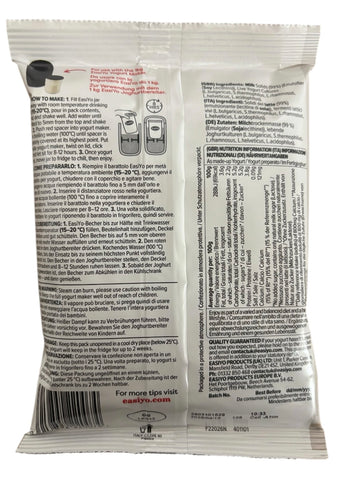 EasiYo Natural Yogurt Base is a whole milk and skim milk yogurt. It is plain and unsweetened, a traditional style yogurt that is perfect to be eaten straight or as part of your favourite recipes. It is ideal for growing children, active energetic people and the elderly, who all require absorbable calcium, protein and all the trace elements found in milk. It has Billions of live cultures, including acidophilus, in every spoonful.
