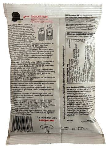 EasiYo Vanilla Yogurt Base is a whole milk and skim milk yogurt. It is ideal for growing children, active energetic people and the elderly, who all require good sources of absorbable calcium, protein and all the trace elements found in milk fat. It has Billions of live cultures, including acidophilus, in every spoonful.