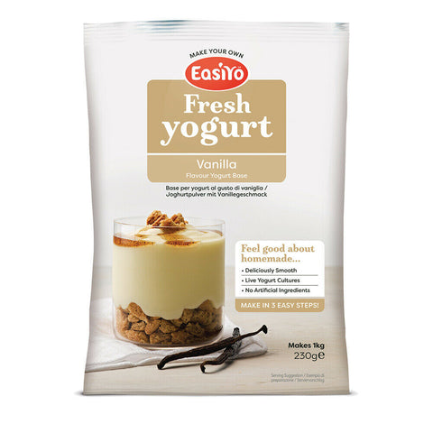 - 1 x 230gm pack of Vanilla flavoured Yoghurt Base & Culture