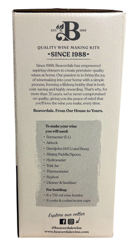 Like all grape wines, wine produced from Beaverdale kits will improve with keeping, but we firmly believe that even within a week of the wine being finished, you will be more than delighted with the taste. If, however, a few bottles from each batch can be laid down, they will have a chance to mature perfectly.