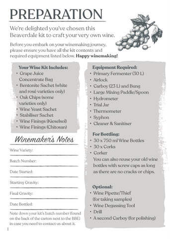 Like all grape wines, wine produced from Beaverdale kits will improve with keeping, but we firmly believe that even within a week of the wine being finished, you will be more than delighted with the taste. If, however, a few bottles from each batch can be laid down, they will have a chance to mature perfectly.