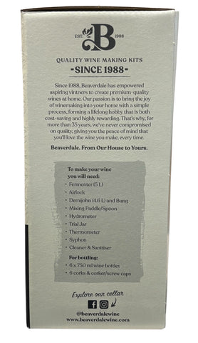 Like all grape wines, wine produced from Beaverdale kits will improve with keeping, but we firmly believe that even within a week of the wine being finished, you will be more than delighted with the taste. If, however, a few bottles from each batch can be laid down, they will have a chance to mature perfectly.